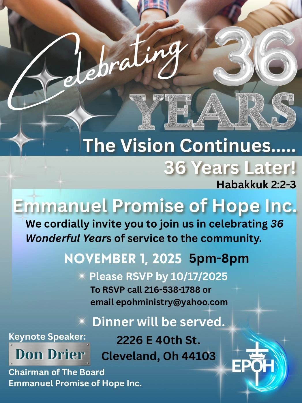 Emmanuel Promise of Hope Inc, or EPOH as we affectionally call it, is for men who have come from all walks of life.